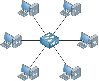 - 到20世纪90年代后期,开始流行使用基于集线器的星形拓扑以太网,集线器(Hub)是一种物理层设备,它作用于各个比特而不是作用于帧。因此,它依旧是一个广播局域网,无论何时从一个接口收到一个比特,它向其他所有接口发送该比特的副本。会发生碰撞,必须重新传输。